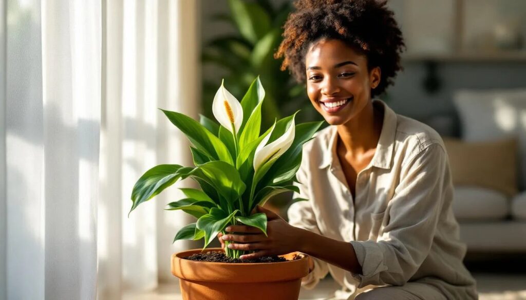 Choose a new pot that is one size larger — roughly 5 cm wider in diameter than the current one. Go no larger than that: peace lilies actually bloom more readily when their roots are slightly snug. A pot with drainage holes is non-negotiable. Use a peat-free, well-draining houseplant compost, ideally one formulated for tropical plants. Loosen the root ball gently with your fingers before settling it into the new container, making sure the base of the stems sits at the same depth as before. Firm the compost lightly, water thoroughly, and let the pot drain completely before returning it to its spot.